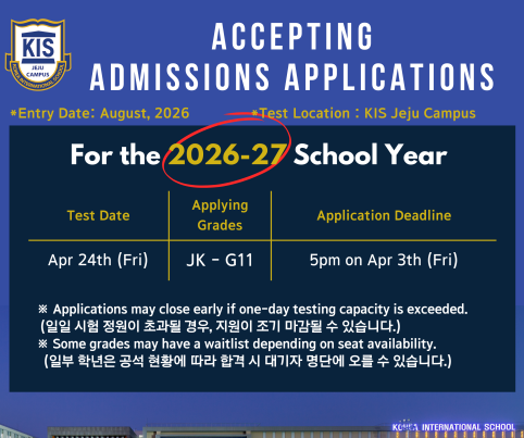 KIS 제주국제학교 2026년 8월 입학 대비 | 4월 24일 수시전형 시험 준비 (MAP Test · Writing · Interview · ITP TOEFL) 맞춤 수업 | IVY 아이비어학원국제학교 관련소식 2026. 3. 19. 10:10