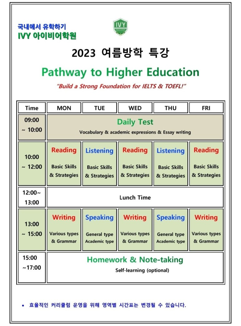 ■ IVY 어학원 커리큘럼